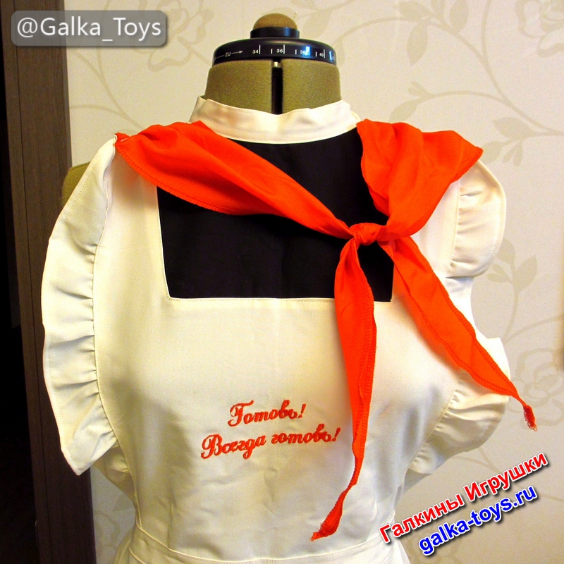 Такой фартук ручной работы с качественной вышивкой станет трогательным сюрпризом для мамы или бабушки, напомнив им о пионерском детстве.